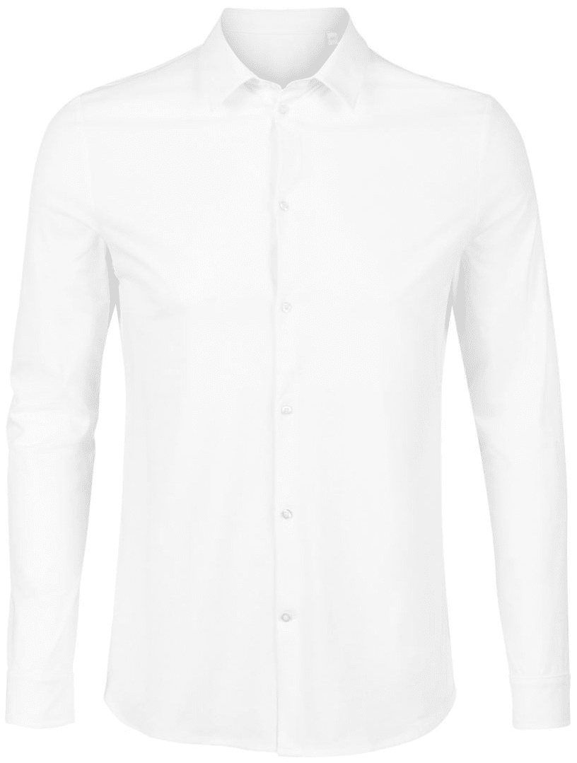 Klassischer, leicht taillierter Schnitt, klassischer Kragen, abgerundete Manschetten mit 2 Knöpfen verstellbar, TearAway-Label