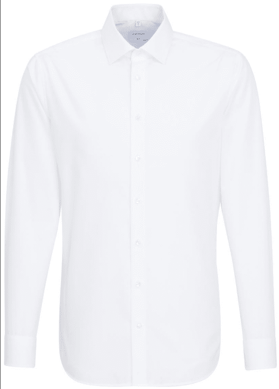 Schmale Passform, Becherkragen, extra breite, vorne offene Manschetten, Nähte vorne und hinten, bügelfrei, waschbar bei 40°, trocknergeeignet