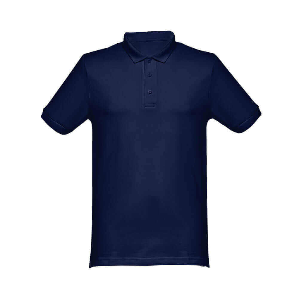 Herren Poloshirt aus Pique Stoff: 100% Baumwolle (195 g/m²). Gerippter Kragen und Ärmel. Verstärkungsband am Kragen und verstärkte Knopfleiste mit 3 Farbknöpfen. Unten mit seitlichen Öffnungen. Ersatzknopf an der Innennaht. Geschnitten und vernäht.