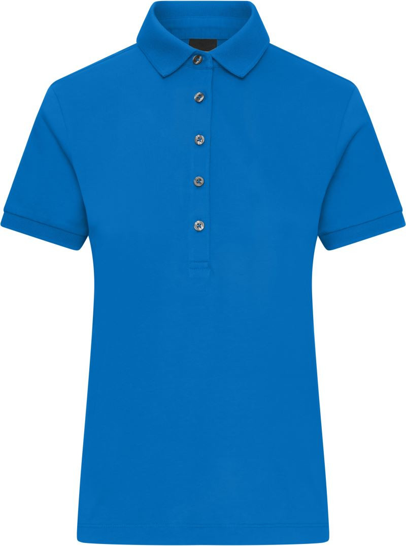 170g/m², 65% Polyester, 35% Baumwolle, Flacher Strickkragen, 3er Knopfleiste mit Ton-in-Ton Knöpfen, Strickbündchen am Arm, 60° waschbar