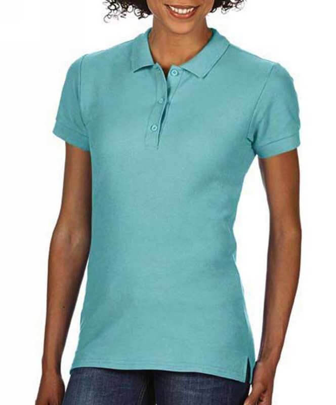 Damen Poloshirt aus Pique Stoff: 100% Baumwolle (195 g/m²). Bei der Farbe 83 bestehend aus 85% Baumwolle und 15% Viskose, mit geripptem Kragen und Ärmel, Verstärkungsband am Kragen, verstärkte Knopfleiste mit 4 Farbknöpfen und einem Ersatzknopf an der Innennaht. Tailliert.