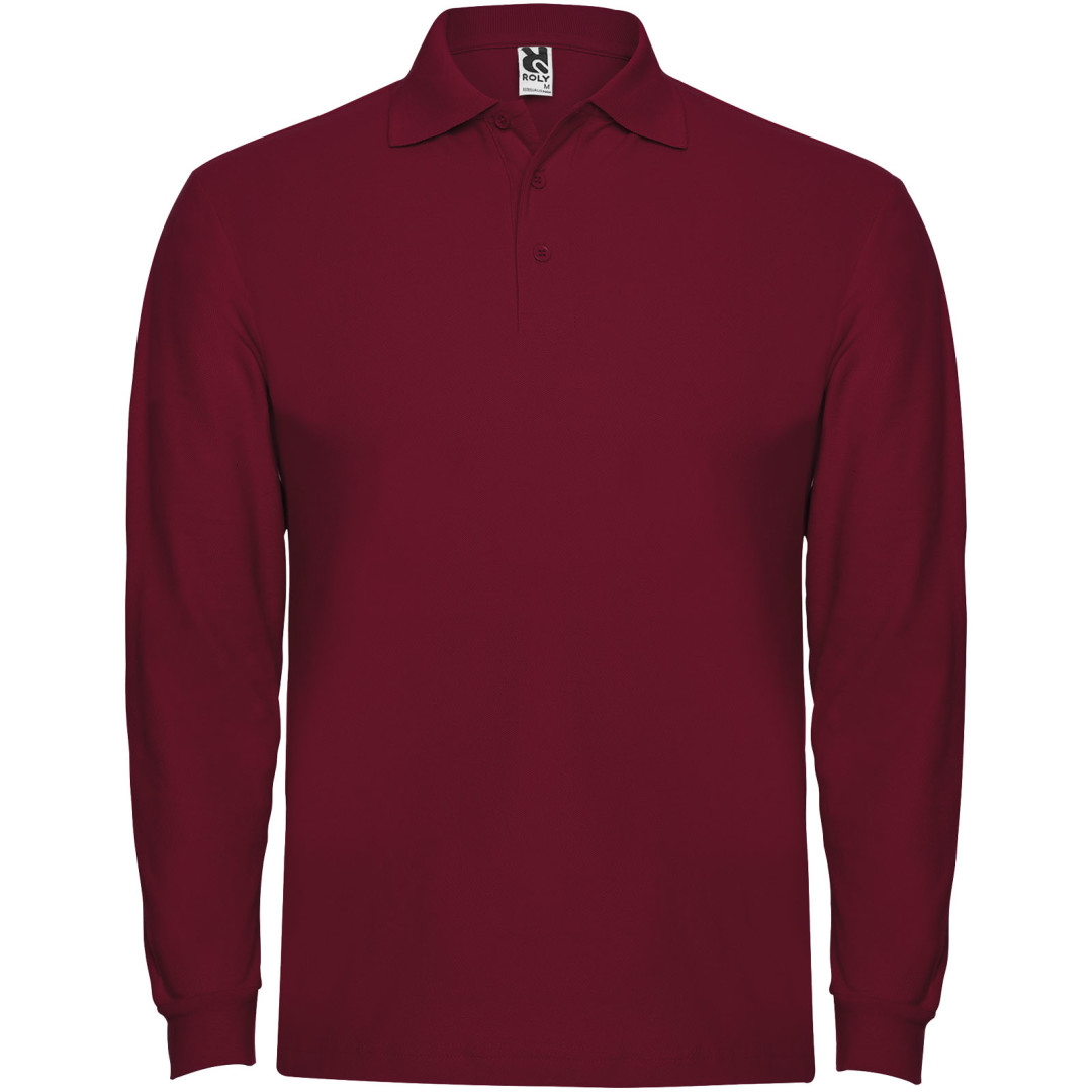 Langärmliges Poloshirt mit geripptem Kragen und Bündchen, 3-Knopf-Verschluss und 1x1-Elastan-Rippbündchen. Verstärkte verdeckte Nähte im Kragen. Optionale Tasche. Abnehmbares Etikett. Das Model ist 190 cm groß und trägt Größe L.