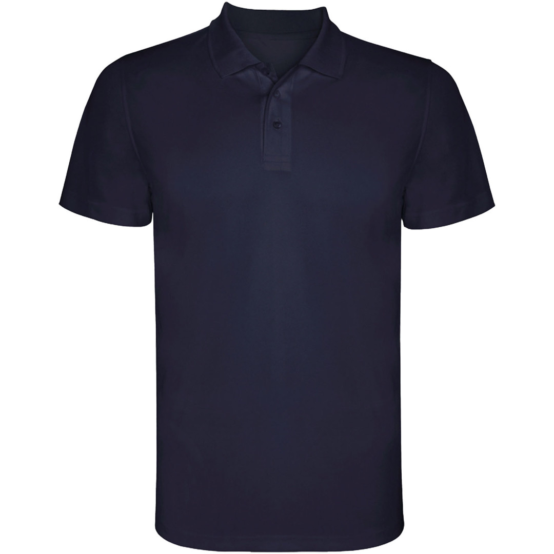 Funktionelles Poloshirt mit kurzen Ärmeln. Gestrickter Kragen mit 3-Knopf-Verschluss. Der Stoff ist leicht zu waschen und zu trocknen und atmungsaktiv. Abnehmbares Etikett. Funktionelle Substanz. Atmungsaktives Gewebe.