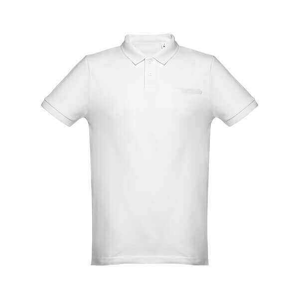 Herren-Poloshirt aus Pique Stoff: 100% Baumwolle (195 g/m²), mit geripptem Kragen und Ärmelbündchen, einem Verstärkungsband am Kragen und verstärkte Knopfleiste mit 2 Farbknöpfen. Unten mit seitlichen Öffnungen, einem Ersatzknopf an der Innennaht und einer Brusttasche.Tailliert.