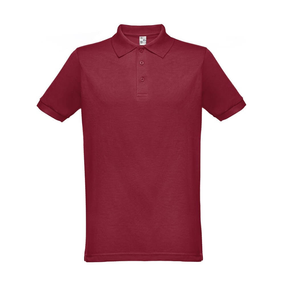 Herren Poloshirt aus Pique Stoff: 65% Polyester und 35% Baumwolle (200 g/m²), mit geripptem Kragen und Ärmel, Verstärkungsband am Kragen und verstärkte Knopfleiste mit 3 Farbknöpfen und einem Ersatzknopf an der Innennaht. Tailliert.
