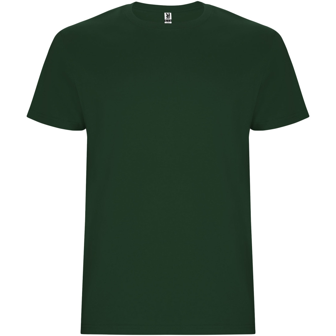 T-Shirt mit 4-lagigem Rundhalsausschnitt und verstärkten, verdeckten Nähten an Kragen und Schultern. Seitennähte. Die Größen 4XL und 5XL sind nur in bestimmten Farben erhältlich. Abnehmbares Etikett. Single jersey Strick 100% Baumwolle, 165 g/m2.