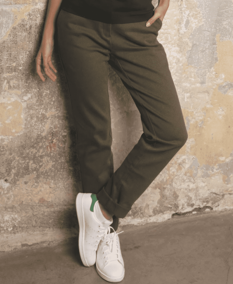 244g/m², 98% Baumwoll Twill, 2% Elasthan, enzymgewaschen, 2 schräge Seitentaschen, 1 Tickettasche, 2 Taschen hinten mit Paspel und verstärkten Nähten, Reißverschluss und Knopf, Gürtelschlaufen, französische Größen, bitte Umrechnung entsprechend Maßtabelle