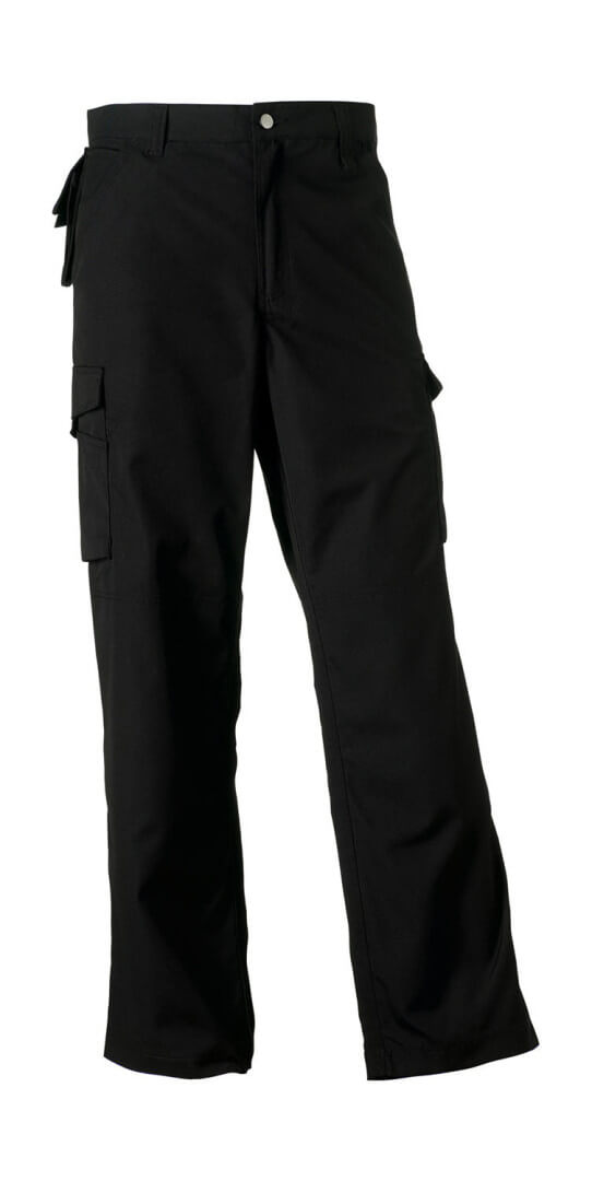 ·260 g/qm ·65% Polyester, 35% Baumwolle (strapazierfähiger Canvas) ·DuPontTM-Teflon-Faserschutzbeschichtung ·Breite Gürtelschlaufen, YKK Zip ·Dreifachnähte an Innenbein und Taschenöffnungen ·Verstärkter Gesäßbereich ·2 Taschen hinten, eine offen, eine mit Klappe und Klettverschluss ·2 Cargo-Taschen, rechts mit praktischen Unterteilungen ·Handytasche unter Taillenbund ·Innenliegende Einschubtaschen für Kniepolster (max. 21 x 15 cm).