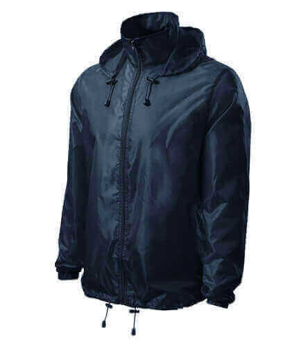 leichte Jacke, winddicht. Versteckte Kapuze im Kragen. Zwei Fronttaschen. Tunnelzug unten und an der Kapuze. Das Produkt wird mit einer Tasche mit Reißverschluss und einer Schlaufe aus demselben Material geliefert. Geeignet zum Bedrucken und Besticken.