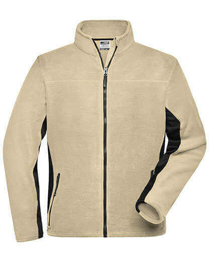 Strapazierfähige Fleece-Mischjacke | Pflegeleichtes Microfleece mit Antipilling-Ausrüstung | Elastische Softshell-Einsätze in Kontrastfarbe an Ärmeln und Seite | Verdeckter Reißverschluss mit Kinnschutz | Stehkragen | 2 Seitentaschen und Ärmeltasche mit Reißverschluss