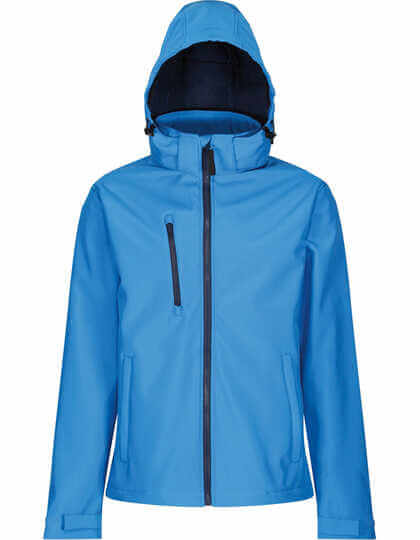 Softshell-Jacke mit Venturer 3-Lagen-Kapuze, 300 g/qm, aus 100% Polyester, gewebtes Softshell-Material mit wasserdichter und atmungsaktiver 3-Lagen-Membran, voll bedruckbares Außenmaterial, winddicht und Innenmembran, 2 untere Reißverschlusstaschen und 1 Brusttasche mit Reißverschluss, abnehmbare Softshell-Kapuze, verstellbarer Kordelzug, verstellbare Ärmelbündchen, abreißbares Etikett.