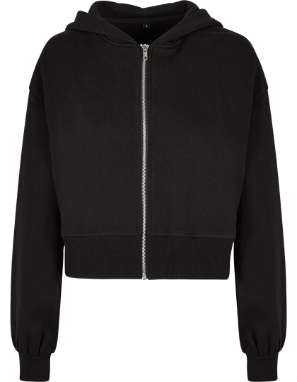 Oversize-Stil | Stylischer Schrumpfstoff | Verkürzte Länge | Mit Reißverschluss | Kapuze mit Kordelzug und Klappe | Fledermausärmel | Elastisches Bündchen