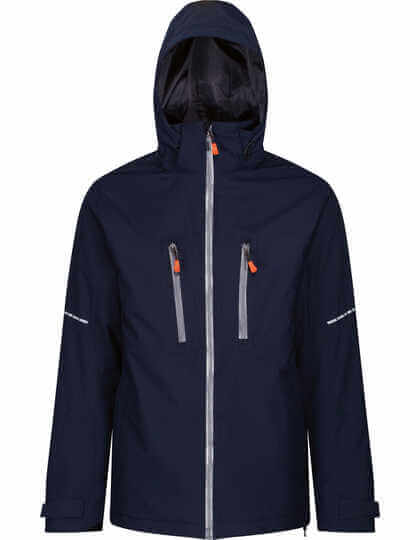 Waterproof Hydrafort 5000 peached Polyester fabric. Windproof fabric. Thermo-Guard insulation. Taped seams. 160 GSM body insulation wadding weight. Concealed hood with adjusters. Adjustable cuffs. 2 lower pockets with zipped handwarmers and 2 lower cargo pockets. Mobile phone pocket. Inner securitiy pocket and zipped chest pocket. Concealed zip entrance for embroidery access.
