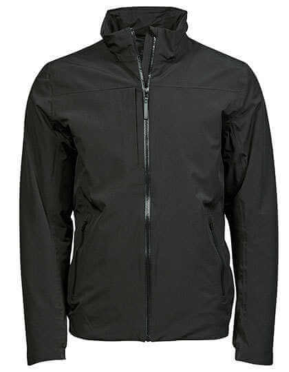 Wasserabweisend (5.000 mm Wassersäule), Stehkragen, Rippbündchen an Kragen, Ärmeln und Saum, 2 Seitentaschen mit Druckknöpfen, Ärmeltasche mit Reißverschluss, integrierte Sicherheitstasche, Innenfutter in Kontrastfarbe, Zugang zur Veredelung in Futter, D-Ring.