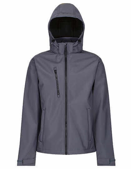 Weich gewebtes XPT-Softshell mit wärmender Rückenschicht, wasserdichter und atmungsaktiver Dreilagenmembran | Vollständig komprimierbares Außenmaterial mit winddichter Innenmembran | Abnehmbare Softshell-Kapuze, verstellbare elastische Kordel im Gesicht und Verstellmöglichkeiten an den Ärmelbündchen | 2 untere Reißverschlusstaschen und 1 Brusttasche mit Reißverschluss
