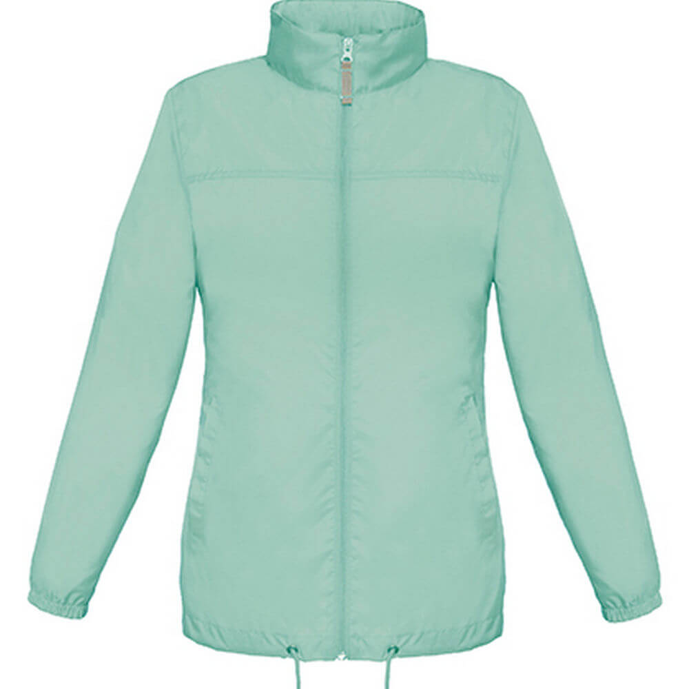 Durchgehender Reißverschluss mit Schieber Damen geschnitten | 2 Fronttaschen | Kapuze im Kragen versteckt | Einstellbare Kapuze | Faltbare Jacke (K-Way-System) in Tasche mit beidseitigem Reißverschluss | Verstellbarer Saum mit Puller Farbcode: # 0092C3 100% Nylon