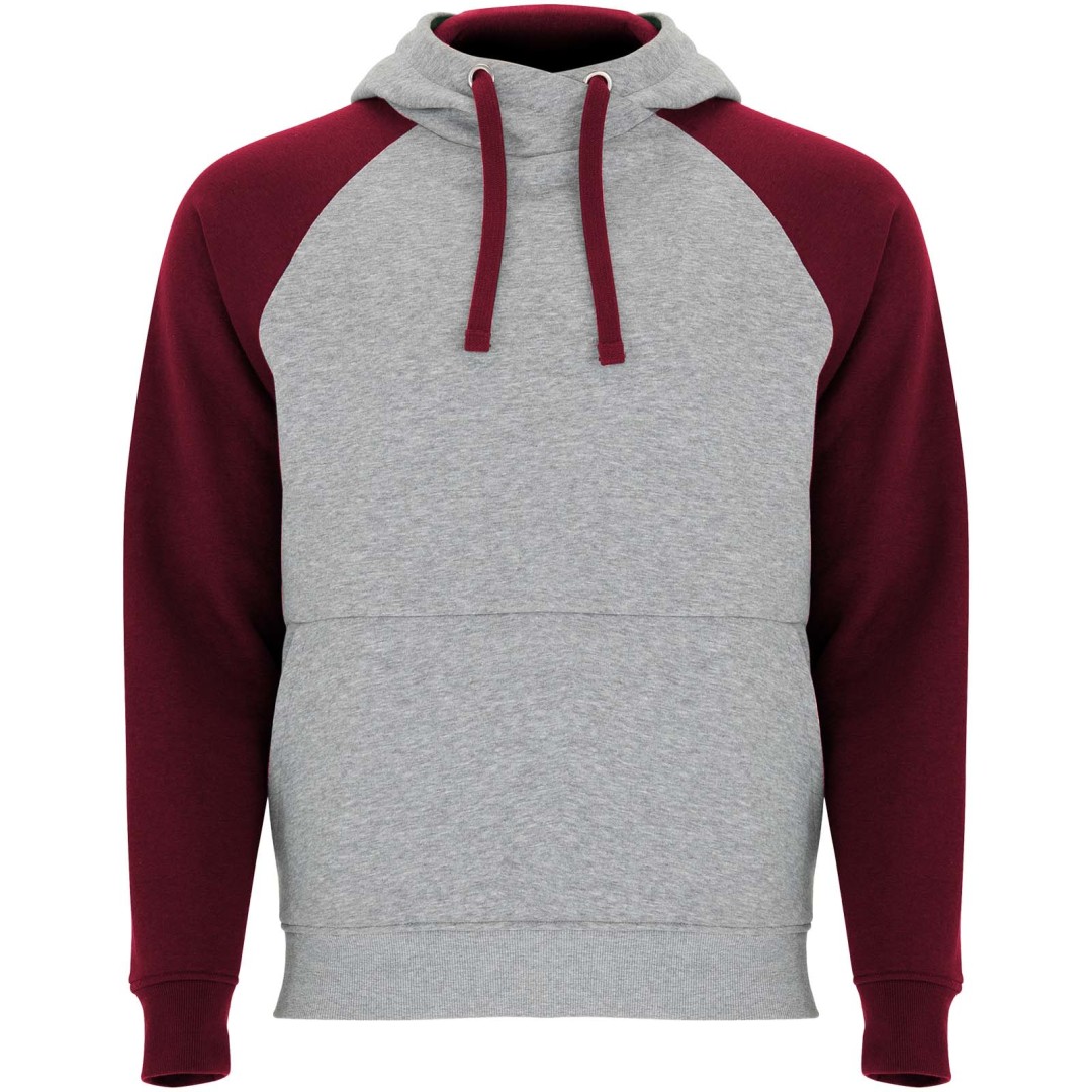 Zweifarbiger Unisex Kapuzenpulli. Kapuze mit gekreuztem Kragen und Metallösen. Innenkapuze, Kordelzug und Raglanärmel in Kontrastfarbe. Kängurutasche. Bündchen und Saum aus elastischem 1×1-Rippstrick. Abnehmbares Etikett. Gebürsteter Sweatshirt Strick 50% Baumwolle, 50% Polyester, 280 g/m2.