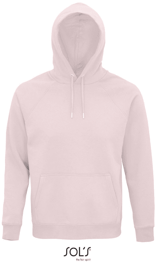 Bio-Baumwolle oder Übergang zu Bio-Baumwolle/recyceltem Polyester (rPET) | Gekämmtes Fleece | Unisex-Styling | Eingesetzte Ärmel | Doppellagige Kapuze | Gleichfarbige Rundkordeln mit Metallabschluss | Metallösen | Verstärkendes Nackenband mit Fischgrätmuster in Gleiche Farbe | Naht im Nacken | Rippbündchen an Ärmeln und Saum | Kängurutasche | Abreißetikett im Nacken | QR-Code-Etikett zur Verfolgung der Lieferkette und zur Überprüfung der positiven Auswirkungen des Kaufs von Bio-Materialien | Pflegeetikett aus Bio-Baumwolle