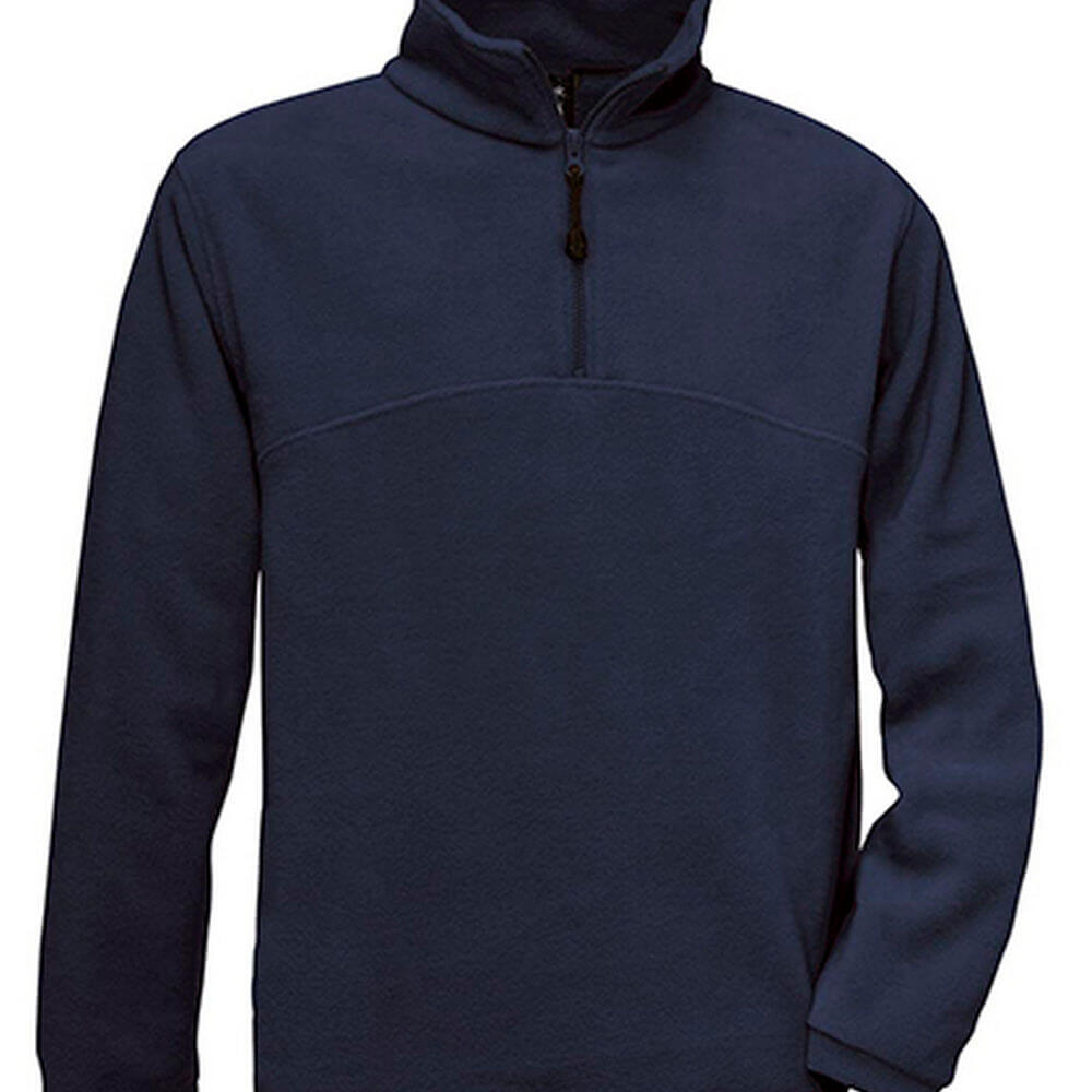 190g/m², 100% Polyester, Angenehm weiche Qualität, Außen: leicht strukturiert, Innen: glatt, Stehkragen, unterlegter Reißverschluss mit Kinnschutz, kontrastfarbige Flatlocknähte, 2 seitliche Taschen mit Reißverschluss