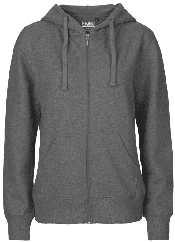 Nackenband, Raglanärmel, Rippenbündchen an Ärmeln und Saum, verdeckter YKK-Reißverschluss, 2 Seitentaschen, aufgeraute Innenseite