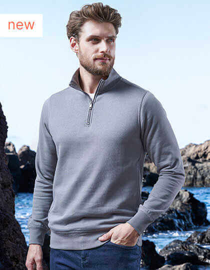 Sweatshirt, gebürstetes Moleskin | Halbmondförmiger Halseinsatz | Farblich abgestimmter Reißverschluss am Kragen | Versetzte Seitennähte | Seitentasche | Elastische Bündchen an Ärmeln und Saum