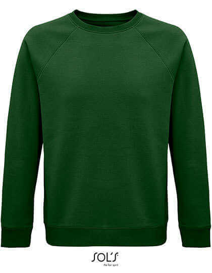 Fleece 280 | 80% Bio-Baumwolle/20% recyceltes Polyester | 3 Fäden | Gekämmte Innenseite | Außen: 100% Baumwolle, gerippt: 97% Bio-Baumwolle/3% Elasthan | Bio-Rundhals-Sweatshirt | Seitennaht | Raglanärmel | Halbmond-Innenausschnitt | Jersey-Druckknopfbänder | 2x2 Rippenbündchen an Ärmeln, Kragen und Saum | Kein Etikett