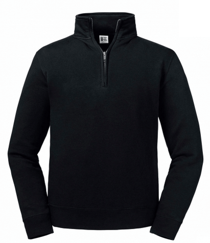 Herren-Sweatshirt mit 1/4-Reißverschluss und Kadettenkragen | Normale Passform | Gleichfarbiges Webband auf der Innenseite des Halses und auf der Rückseite des Reißverschlusses | Geklebte Schultern | Manschette mit doppeltem Rippenband und doppeltem Doppellagiger Kragen | Doppelt abgesteppte Schultern und Armausschnitte | Zirkoniumfarbener Metallreißverschluss und Schieber | Abreißetikett | Abgedeckter Reißverschluss für besseren Druck | Gerippte Abschlüsse und Bündchen halten die Form
