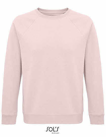 Fleece 280 | 80% Bio-Baumwolle/20% recyceltes Polyester | 3 Fäden | Gekämmte Innenseite | Außen: 100% Baumwolle, gerippt: 97% Bio-Baumwolle/3% Elasthan | Bio-Rundhals-Sweatshirt | Seitennaht | Raglanärmel | Halbmond-Innenausschnitt | Jersey-Druckknopfbänder | 2x2 Rippenbündchen an Ärmeln, Kragen und Saum | Kein Etikett