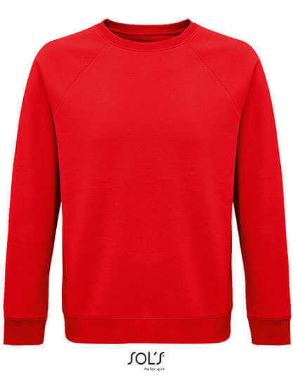 Fleece 280 | 80% Bio-Baumwolle/20% recyceltes Polyester | 3 Fäden | Gekämmte Innenseite | Außen: 100% Baumwolle, gerippt: 97% Bio-Baumwolle/3% Elasthan | Bio-Rundhals-Sweatshirt | Seitennaht | Raglanärmel | Halbmond-Innenausschnitt | Jersey-Druckknopfbänder | 2x2 Rippenbündchen an Ärmeln, Kragen und Saum | Kein Etikett