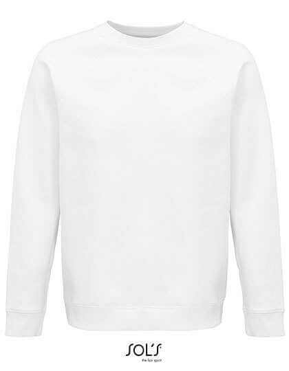 Fleece 280 | 80% Bio-Baumwolle/20% recyceltes Polyester | 3 Fäden | Gekämmte Innenseite | Außen: 100% Baumwolle, gerippt: 97% Bio-Baumwolle/3% Elasthan | Bio-Rundhals-Sweatshirt | Seitennaht | Raglanärmel | Halbmond-Innenausschnitt | Jersey-Druckknopfbänder | 2x2 Rippenbündchen an Ärmeln, Kragen und Saum | Kein Etikett