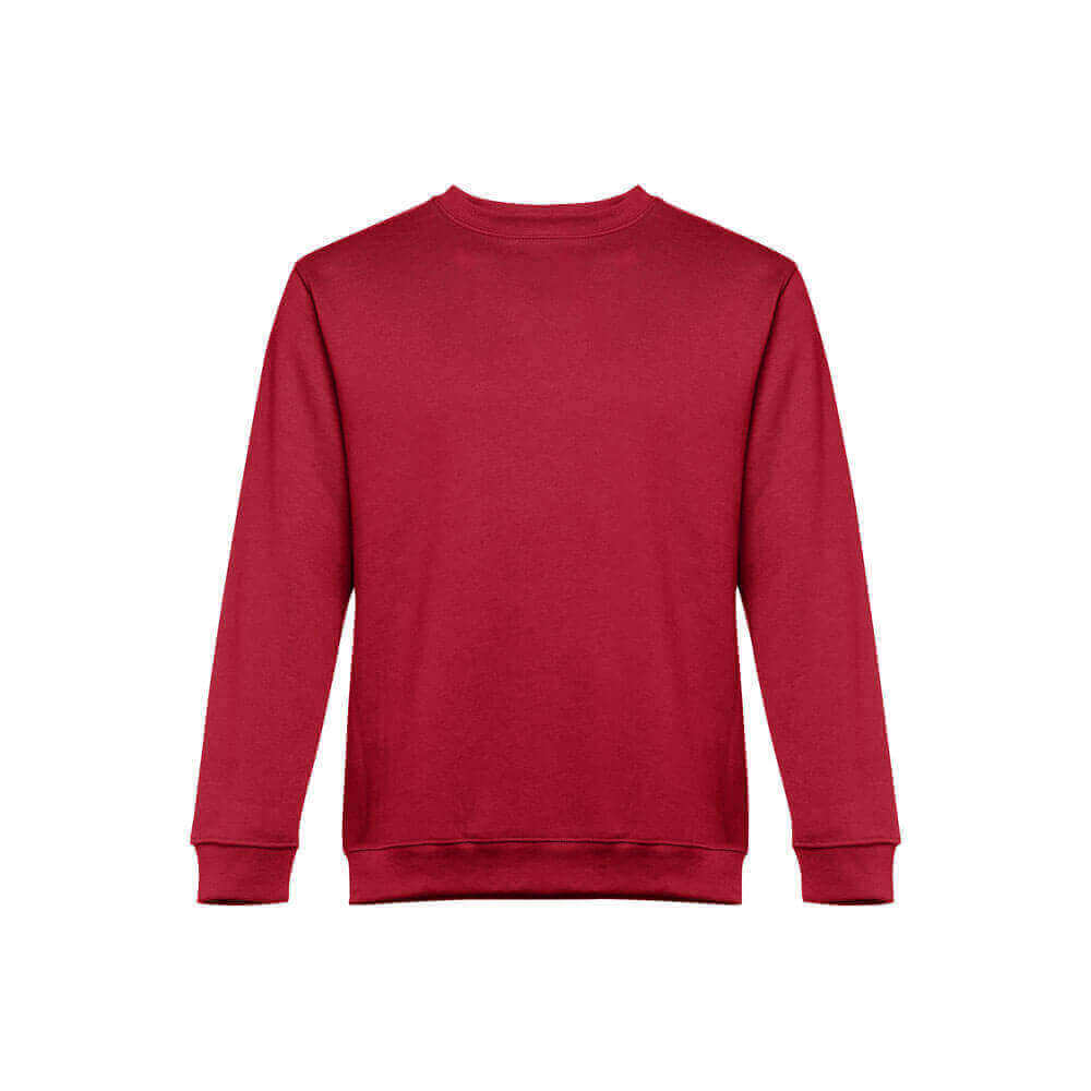 Sweatshirt aus 50% Baumwolle und 50% Polyester (300 g/m²), unisex. Innen kardiert, mit 1x1 Ripp, Doppelnaht am Kragen, Manschetten und Bund und einem Verstärkungsband am Kragen.
