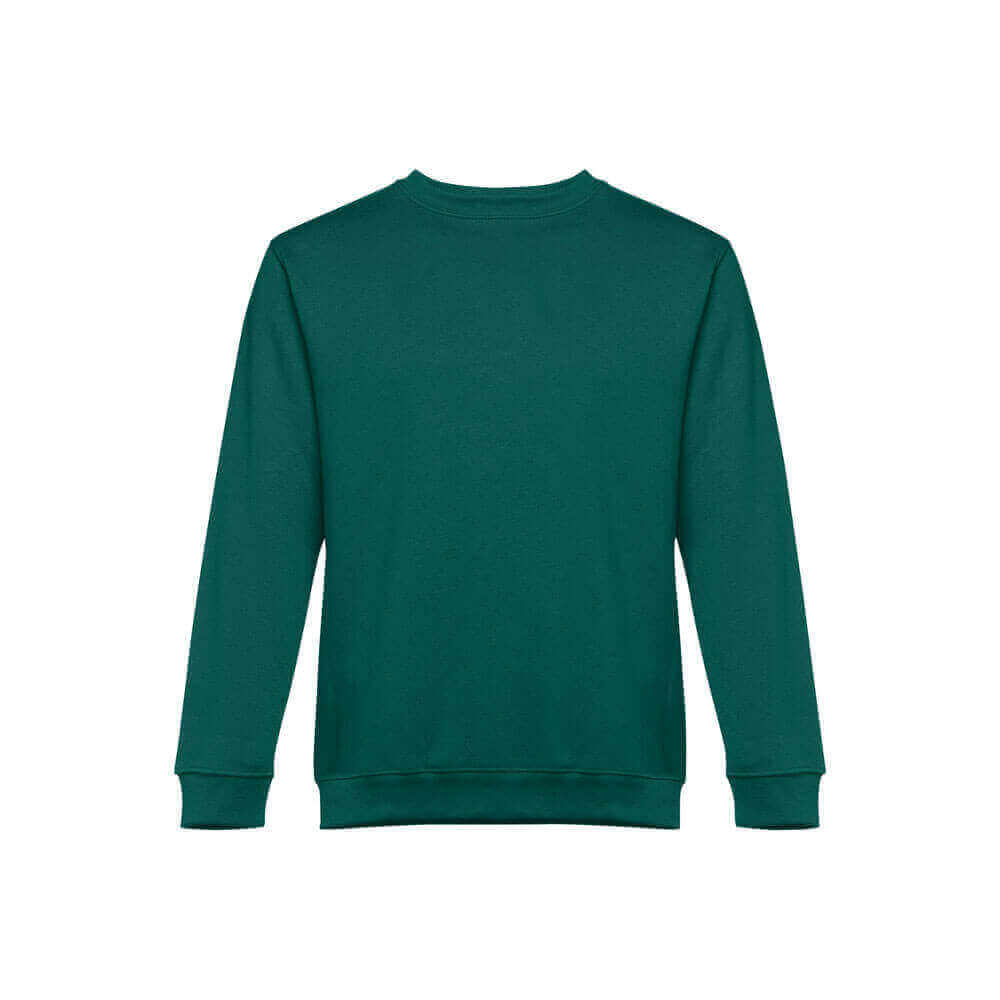 Sweatshirt aus 50% Baumwolle und 50% Polyester (300 g/m²), unisex. Innen kardiert, mit 1x1 Ripp, Doppelnaht am Kragen, Manschetten und Bund und einem Verstärkungsband am Kragen.