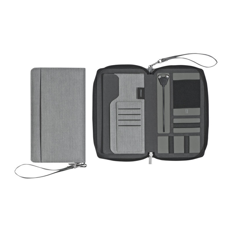 A4-Konferenzkarte aus Kunstleder mit Reißverschluss und praktischem Griff, inklusive Stiftschlaufe, Ringmechanik, Notizblock (30 Blatt), Tablet-Halter, Handytasche, 1 Gummiband, 8 Fächer, großes Fach.