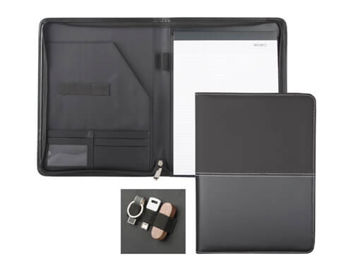 A4 PU Zippered conference folder, excluding note pad (item 8400) and pen.