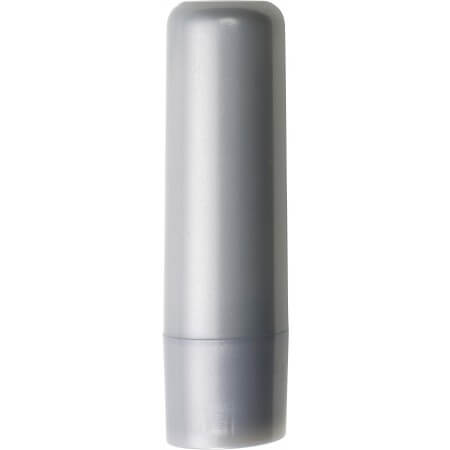 Transparent plastic lip balm stick (white, silver and black are solid colours) with SPF15 protection.