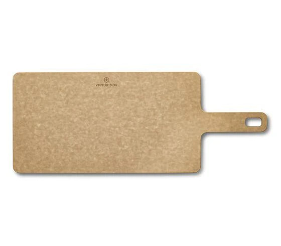 VICTORINOX NÁREZOVÉ DOSKY EKOLOGICKÉ A ELEGANTNÉ RIEŠENIE Produkty z ekologicky obnoviteľných zdrojov, ktoré však nejdú cestou kompromisu k funkčnosti alebo štýlu: to je základný princíp kolekcie nárezových dosiek Victorinox. Vyrobené sú z papierovo-kompozitového materiálu, ktorý je odolný, elegantný a v kolekcii sa nachádzajú okrem klasických nárezových dosiek aj stojany na dosky a ochranný vosk vyrobený z prírodných produktov. Vďaka robustnej konštrukcii je každý kus vhodný do umývačky riadu a odoláva teplotám do 175°C/350°F. Ultraľahký materiál má prírodný charakter, čo sa prejavuje šetrnosťou k nožom a kuchynskému riadu. Na výber je hnedá alebo čierna verzia, čím sa táto kolekcia štýlovo hodí do akejkoľvek kuchyne.
