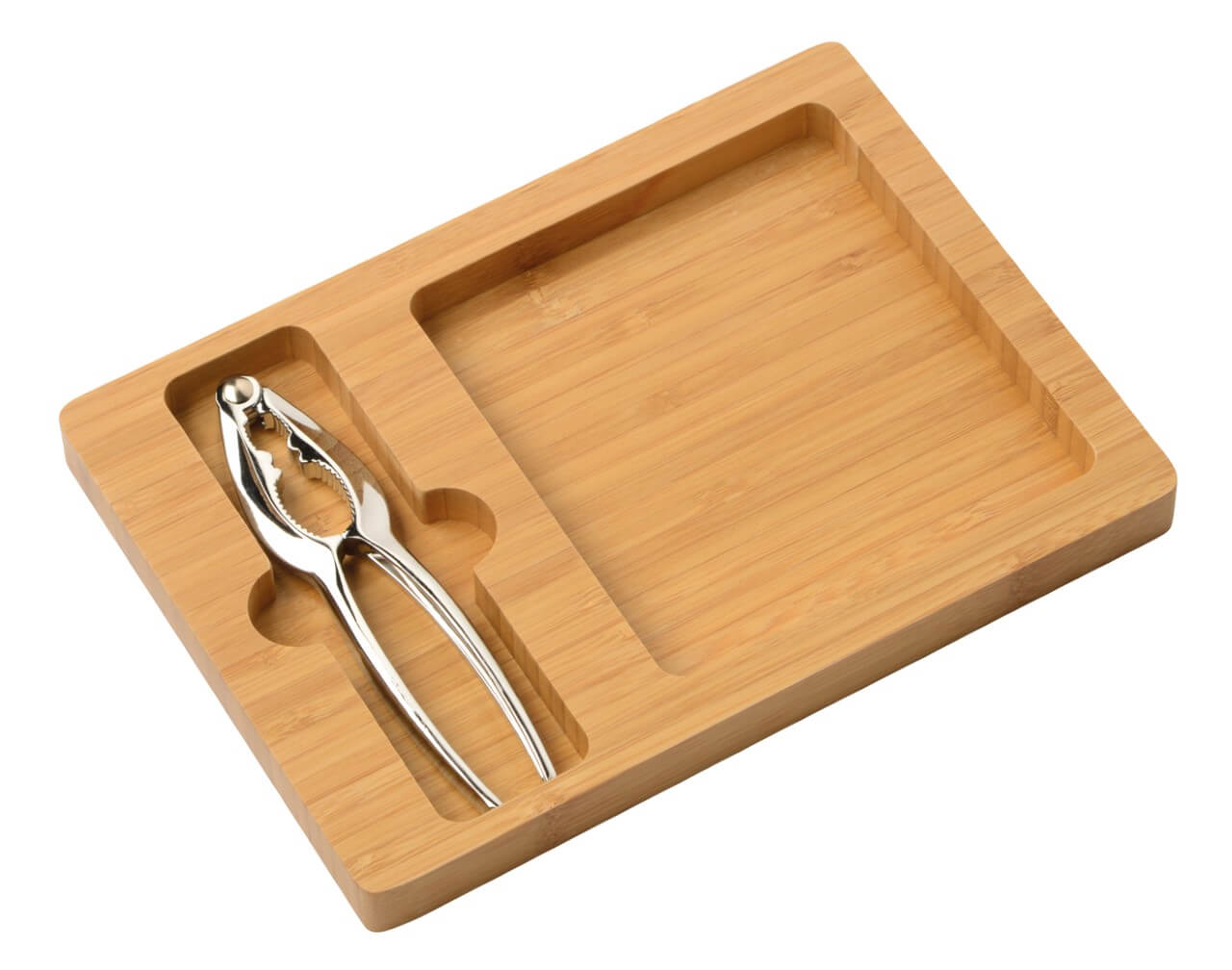 Set Casse-noix KNACK : Bol en bambou avec emplacement pour le casse-noix en métal brown, silver Bamboo / Zinc Alloy