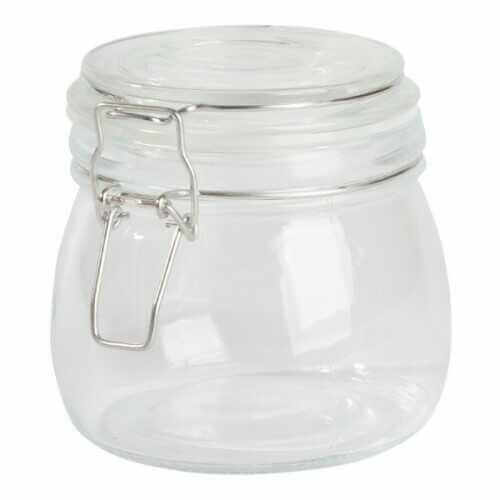 CLICKY-Glasgefäß mit Deckel und weißer Silikondichtung: für die Zubereitung von Konserven, eingelegtem Gemüse oder zur Aufbewahrung von Lebensmitteln, vormontierter Deckel, leicht zu öffnen und zu schließen, vielseitig einsetzbar, Fassungsvermögen ca. 500 ml.