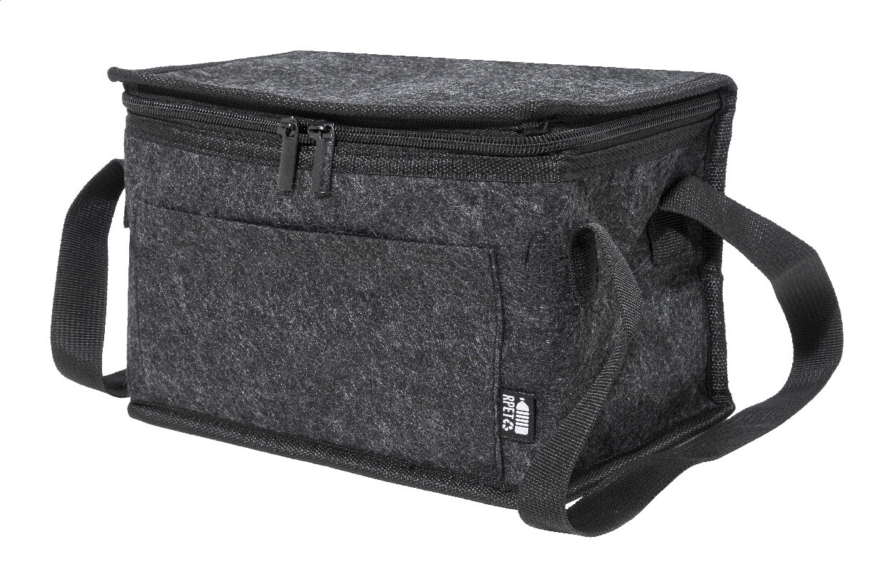 RPET-Filz-Kühltasche mit Reißverschluss, Aluminiumpolsterung, Fronttasche und Seitengriffen. Mit markantem RPET-Label. Neu. Go Green. Taschenkapazität: 4 kg. Taschenvolumen: 5 l