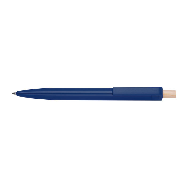 Kugelschreiber aus recyceltem ABS-Kunststoff mit blau schreibender Mine.