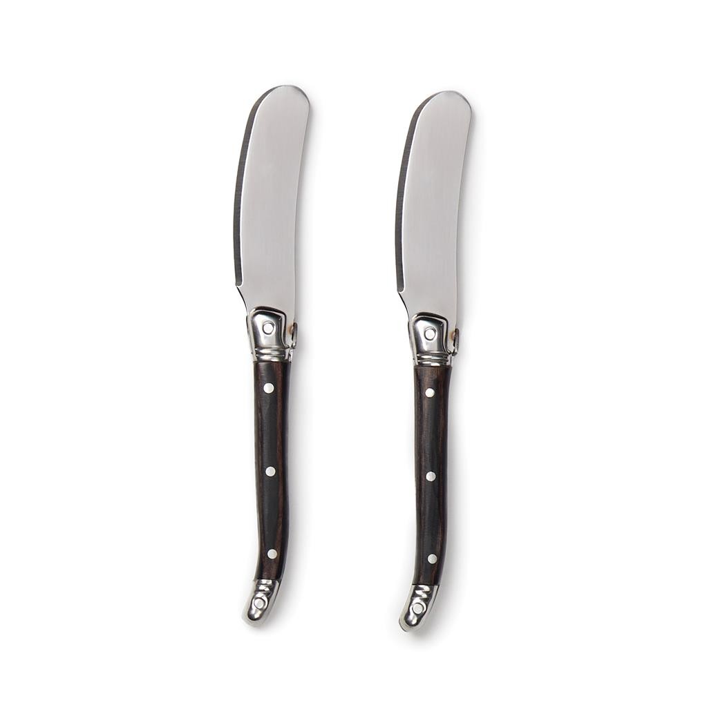 Exklusives 2-teiliges Buttermesser-Set aus Stainless Steel. Diese Messer sind perfekt zum Verteilen von Butter oder Marmelade auf Toast, Bagels, Muffins und mehr. Die hochwertigen Edelstahlklingen sorgen für einen glatten und mühelosen Aufstrich, während die stabilen Griffe aus Pakkaholz einen angenehmen Griff bieten. Das Set wird in einer exklusiven Geschenkbox geliefert und ist somit ein ideales Geschenk für jeden Anlass.