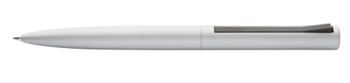 Kugelschreiber mit Schaft aus recyceltem Aluminium und silberfarbenem Clip aus ABS Kunststoff. Recyceltes Aluminium reduziert die Menge an Deponiemüll, schont die natürlichen Ressourcen und reduziert die Treibhausgasemissionen. Tintenfarbe: Schwarz. Schreiblänge: 800 Meter. Schreibspitze: 1 mm. Recyceltes Aluminium.