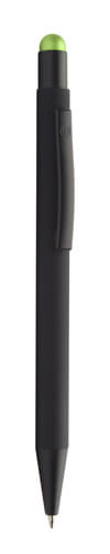 Aluminium-Kugelschreiber und Touchpen mit gummierter Oberfläche. Mit Spezialbeschichtung für Spiegelgravur, farblich abgestimmt mit dem Touchpen, blauschreibend.