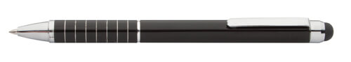 Touchpen mit Kugelschreiber aus Aluminium. Mit blau schreibender Mine.