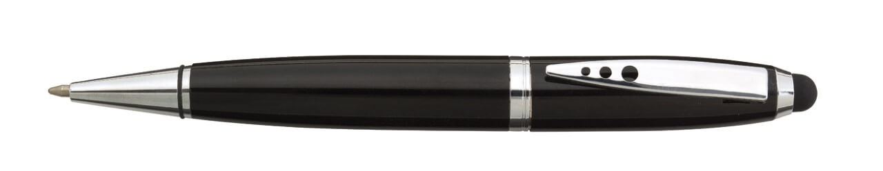 Touchpen mit Aluminium-Kugelschreiber und blauer Mine.
