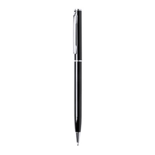 Kugelschreiber aus Metall, mit blauschreibender Mine. Geliefert in einem Etui aus Kraftpapier.