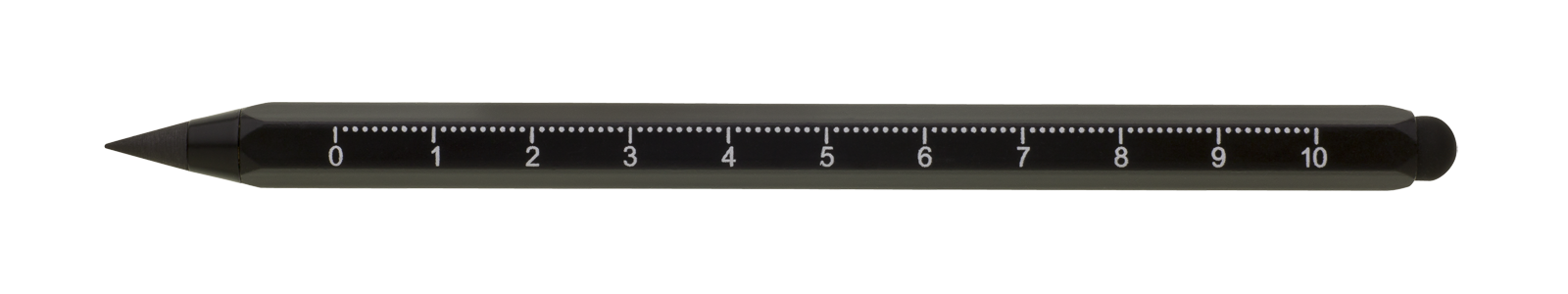 Tintenkugelschreiber aus Aluminium mit einer Spitze aus einer Metall-Graphit-Legierung, die lange hält. Sie brauchen nicht zu spitzen und können löschen, was Sie schreiben. Wird in einer schwarzen Kraftbox geliefert. ø8 x 153 mm