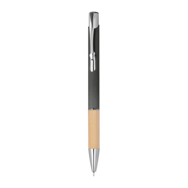 Aluminium-Kugelschreiber mit blauer Gelfüllung (Spitze 1 mm) mit geriffeltem Griff.
