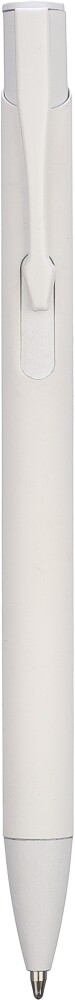 Recycled aluminum ballpoint pen with a rubberized coating on the body. The clip, tip, and pusher are in matching color. The clip is made from metal and the tip from plastic. Approx. 800 meters of writing length. Includes engraved recycled aluminum logo. Blue ink. Dimensions: 1 x 13,6 x 1,2 cm