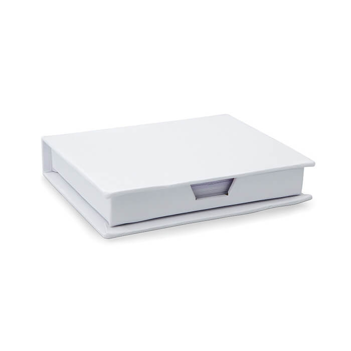 Na zákazku vyrobený papierový stojan na pero so samolepiacimi lístkami. Obsahuje 50 listov samolepiacich lístkov z recyklovaného papiera (100×75 mm). Cena je vrátane plnofarebnej potlače na hornej strane, nezahŕňa tlačovú prípravu. Min. mn.: 100 ks.